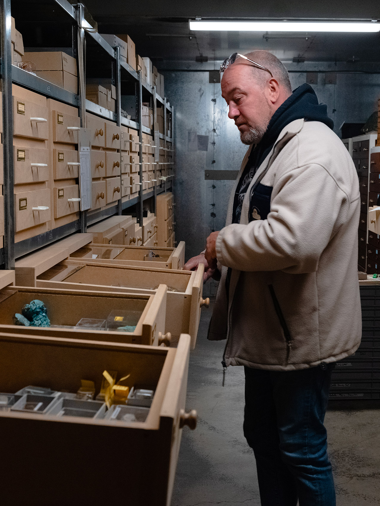 Les collections minéralogiques rassemblent plus de 45 000 spécimens, allant des échantillons systématiques aux pièces d'exposition, en passant par les spécimens d'intérêt national et les spécimens représentatifs des gisements mondiaux.